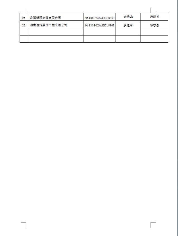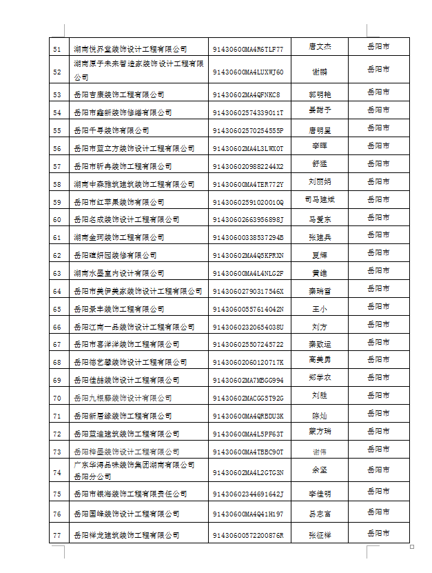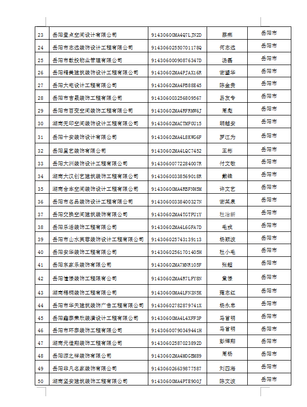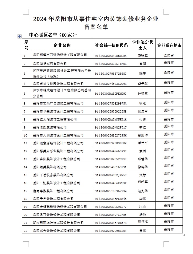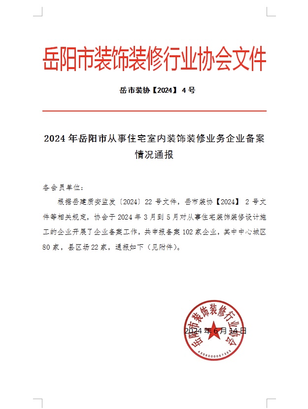 2024年岳阳市从事住宅室内装饰装修业务企业备案情况通报
